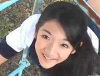 股間の生地が薄くてイイ感じです。体育座りでパンティを見せながら、主観目線で見つめてくれます。お墓をバックにして薄汚い朝礼台が非日常的でいい味を出しています。鉄棒をいっぱいやらされセクシーポーズも連発して、ちょっと疲れた表情が萌え〜です。その辺の計算もしていたのでしょうか。いい表情がいっぱい見られます。黒いローファーに白いハイソックスを履いて紺のスカートという定番のスタイルも見所。本物JCがやるとコスプレを超越しますね。